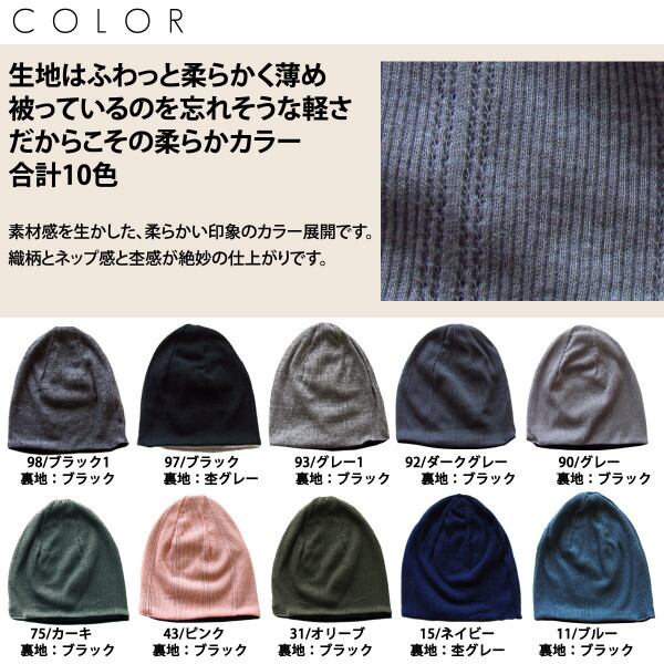 オーガニックコットンを使用した医療用帽子です。抗がん剤 治療中の方への贈り物としても最適な帽子です。豊富なカラーも魅力的で洗い替えにいろんな色を選んでみては?ちょうどいい厚みなのでオールシーズンかぶれちゃうニット帽です。入院お見舞い毎日の洗い替えにどうぞ。たくさんの方に当店の商品の良さを知っていただくため日本製なのに激安お試し価格といたしました。売れる訳ありな帽子をぜひ一度ゆっくり見比べてください。